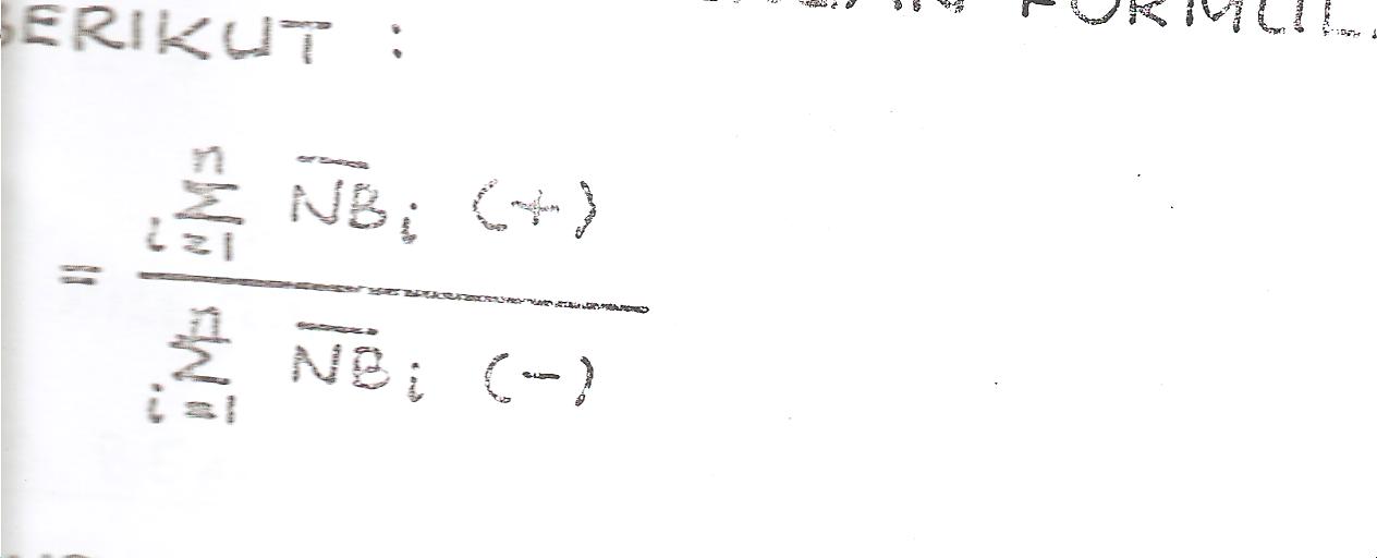 Net B/C ratio merupakan perbandingan antara net benefit yang telah di discount positif (+) dengan net benefit yang telah di discount negatif (-) , dengan formula sebagai berikut :